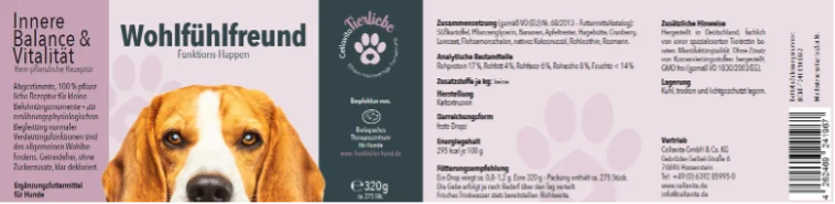 Unsere Hundeleckerlis werden zu 100 % aus pflanzlichen Rohstoffen hergestellt und sind rein pflanzlich. Die Rezeptur ist getreidefrei und enthält reichlich Gemüse – ideal als Belohnung im Alltag.